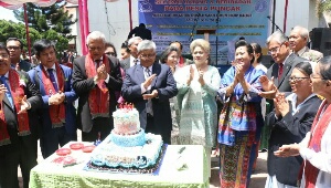 Ephorus HKBP/Ketua Pembina Yayasan Kesehatan HKBP, bersama Bupati Tobasa Ir. Darwin Siagian, Sekjend HKBP/Anggota Pembina Yayasan, Wakil Ketua Pengurus Yayasan Kesehatan St. Edison Manurung, Tokoh Masyarakat, dan utusan lainnya, hendak meniup lilin ulang tahun ke 100 Rumah Sakit HKBP Balige.