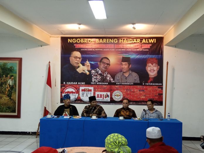 Negara dan pemerintah harus tegas terhadap kelompok yang mau merongrong dan ingin mengganti Pancasila.”demikian diungkapkan H. R. Haidar Alwi, salah seorang tokoh bangsa, pejuang pluralisme dan pembela Ideologi Pancasila,- dalam acara “Ngobrol Bareng Haidar Alwi”, di Gedung Juang, Jakarta (17/7/19).