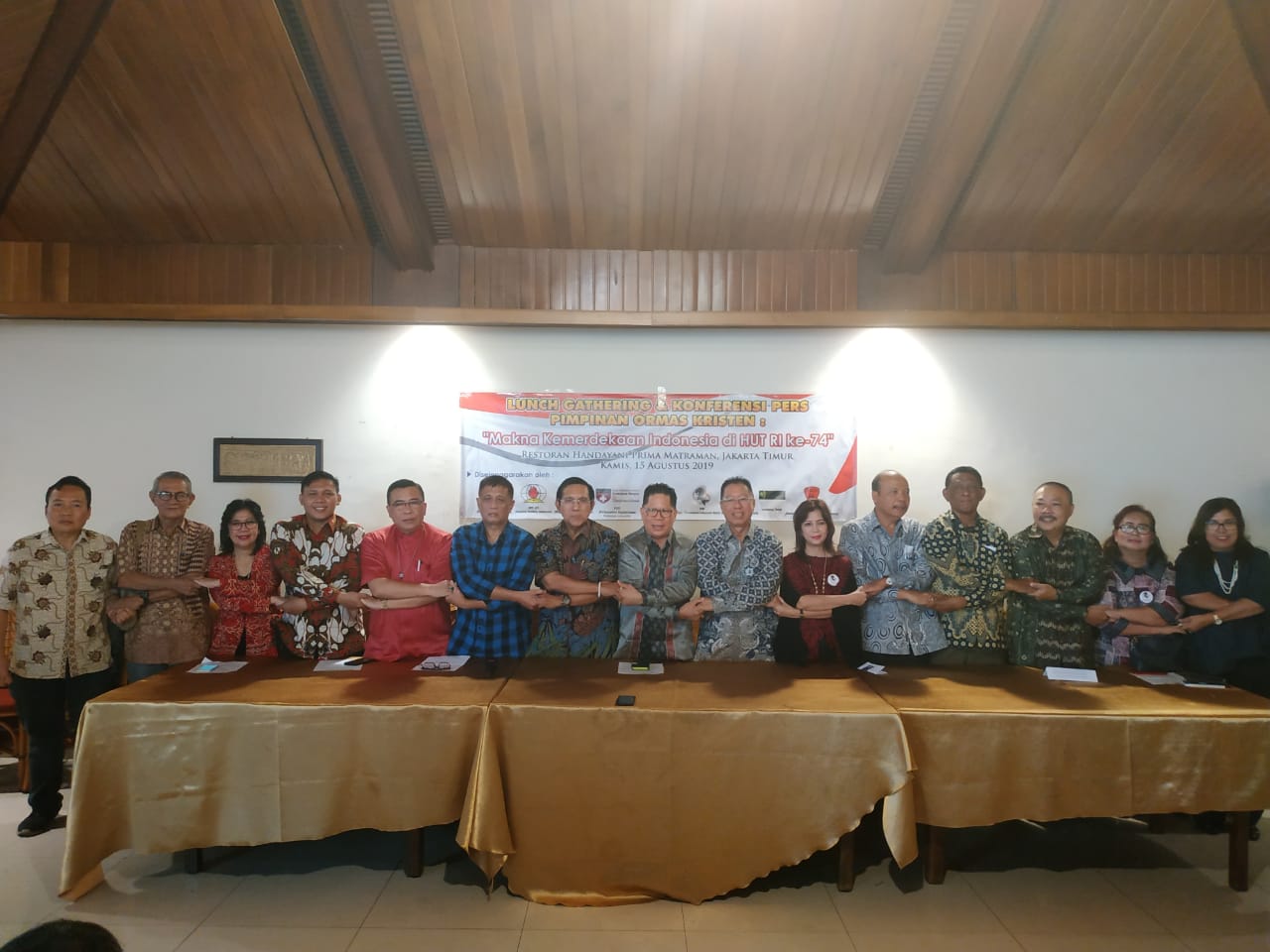 Sambut Hari Ulang Tahun Kemerdekaan RI ke-74, Puluhan Organisasi massa Kristen menyampaikan refleksi, harapan dan sikap, khususnya mengenai makna Kemerdekaan, di Restoran Handayani, Jakarta Timur (15/8/19)