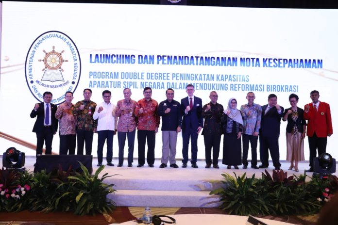 Kementerian PANRB menginisiasi kerja sama Double Degree di berbagai bidang antara lain Universitas Indonesia, Universitas Hasanudin dengan University of Melbourne, Australia serta Victoria University of Wellington, Selandia Baru. “Para ASN yang mengikuti Double Degree disiapkan sebagai reform agent, yang paham isu dan masalah internal serta dikolaborasikan dengan konsep dan perkembangan paradigma reformasi birokrasi yang berkembang di dunia,” ungkap Menteri PANRB Syafruddin, dalam acara Launching Program Double Degree, di Jakarta, Rabu (21/08).