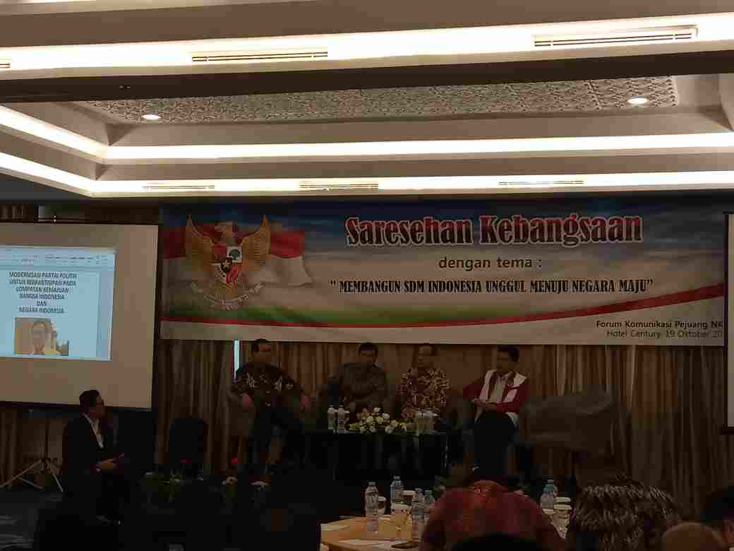 Forum Pejuang NKRI menggelar Sarasehan Kebangsaan “Membangun SDM Indonesia Unggul Menuju Negara Maju” di Hotel Athlete Century, Jakarta. (19/10/19).