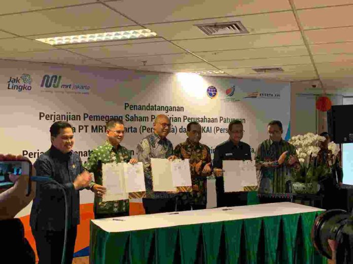 Penandatanganan MoU tersebut dilakukan langsung oleh Kadishub Provinsi DKI Jakarta Syafrin Liputo, Dirut MRT Jakarta William P. Sabandar, dan Dirut KAI Edi Sukmoro yang disaksikan oleh Menteri BUMN Erick Thohir, Menhub Budi Karya Sumadi, dan Gubernur Provinsi DKI Jakarta Anies Rasyid Baswedan dilakulan di Kantor Kementerian BUMN hari Jum’at (10/1/2020).