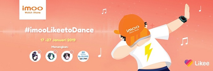 Challenge #imooLikeetoDance oleh Likee dan imoo diselenggarakan hingga 27 Januari 2020. 3 (tiga) video terbaik akan memenangkan imoo Phone Watch seri Z dan 20 video terbaik akan mendapatkan voucher GoPay masing-masing senilai Rp50.000!