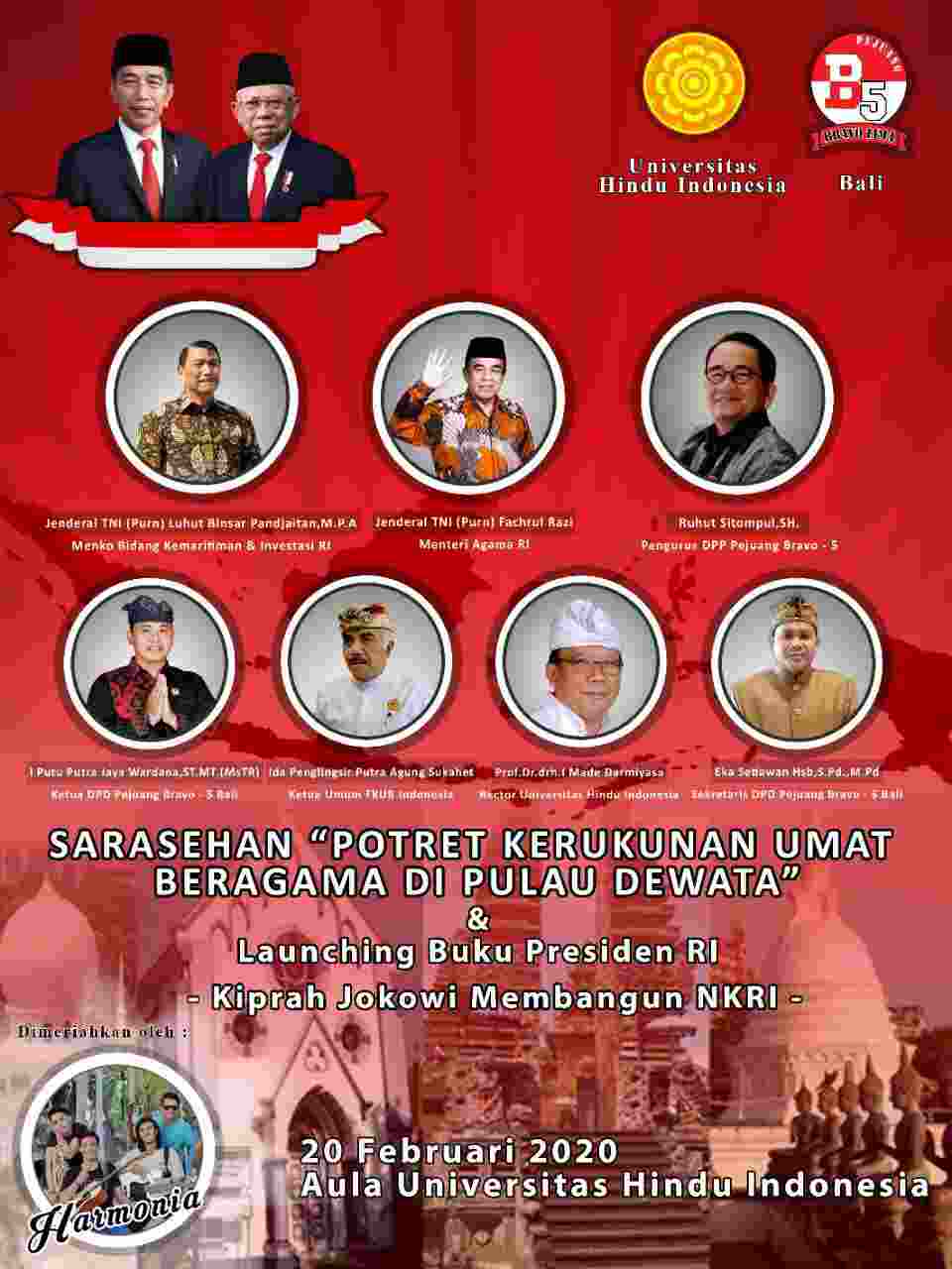 Adapun sarasehan tersebut akan diselenggarakan pada tanggal 20 Februari 2020 yang bertempat di Aula Universitas Hindu Indonesia, Bali.