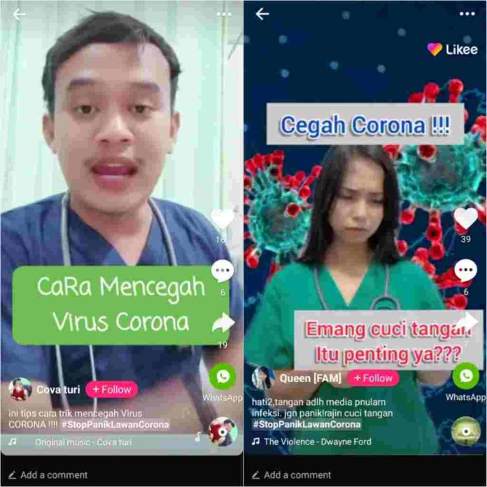 Likee fokus menyebarkan informasi bagi orang-orang agar selalu melindungi diri mereka di tengah wabah virus Corona ini. Melalui #StopPanikLawanCorona, Likee bekerjasama dengan dokter dan suster untuk menyediakan informasi terkait virus corona. Dengan menggunakan video pendek, petugas kesehatan dapat berpartisipasi secara virtual dalam mencegah penyebaran virus corona dengan menunjukkan apa saja yang harus dilakukan untuk melindungi diri dari virus dan juga mengajak orang-orang yang sedang sakit untuk memakai masker agar virus tidak menular ke orang lain atau mandek di tempat-tempat umum, hal ini seperti yang disarankan oleh pemerintah. Yuk, kita sebarkan kesadaran masyarakat untuk mencegah tersebarnya virus corona!