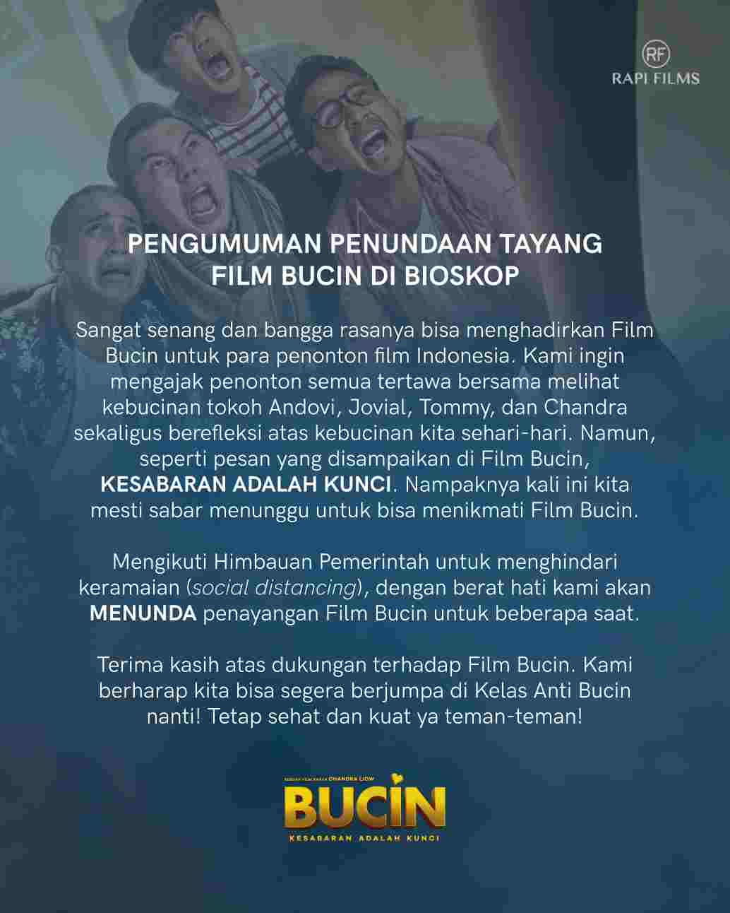 RAPI FILMS MEMUTUSKAN MENUNDA JADWAL TAYANG FILM BUCIN