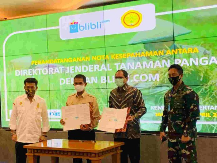 Kementerian Pertanian (Kementan) menggandeng Blibli sebagai salah satu perusahaan e-commerce guna semakin memudahkan penyediaan dan distribusi bahan pangan ke masyarakat terutama di masa wabah COVID-19. Dengan memiliki Program Komando Strategi Penggilingan (Kostraling), Kementan secara resmi melakukan penandatangan nota kesepahaman atau MoU dengan Blibli di Kantor Pusat Kementan hari ini.