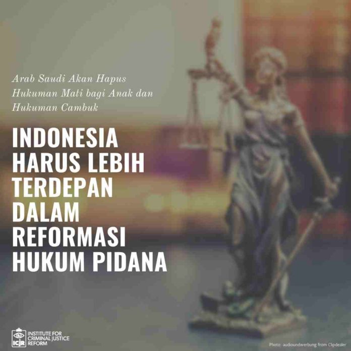 _Kebijakan penghapusan hukuman cambuk hingga hukuman mati mulai diperkenalkan di Arab Saudi dalam rangka mempromosikan hak asasi manusia sebagai bagian dari upaya reformasi hukum. ICJR memandang jika dibandingkan dengan Arab Saudi, Indonesia bisa dibilang lebih maju dalam penghormatan Hak Asasi Manusia, maka Indonesia saat ini harus lebih menunjukkan komitmen dalam menaati norma HAM internasional khususnya pada penghapusan hukuman mati dan hukuman badan. Indonesia harus menjamin hukuman mati hanya pada kejahatan paling serius dan peluang adanya komunitasi/perbuahan hukuman bagi terpidana mati dalam deret tunggu dan penghapusan hukuman badan di seluruh wilayah Indonesia._