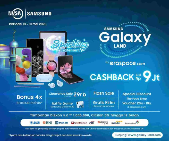 Raby Agusta, General Key Account Management PT. Samsung Electronic Indonesia mengemukakan, “Kami gembira Erajaya sebagai partner strategic Samsung memiliki inisiatif untuk memperkenalkan format baru Galaxy Land dalam bentuk kegiatan online. Event ini sudah merupakan sebuah trade-mark buat Samsung dan Erajaya, jadi sayang apabila ditiadakan karena pandemic Covid-19. Karenanya kami menyambut baik gagasan Galaxy Land by eraspace.com ini, sehingga kami tetap bisa memberikan produk terbaik dengan penawaran terbaik dan mendukung Konsumen melakukan Shop From Home melalui event Galaxy Land yang pasti sudah ditunggu-tunggu oleh Konsumen, apalagi menjelang Lebaran seperti saat ini.”