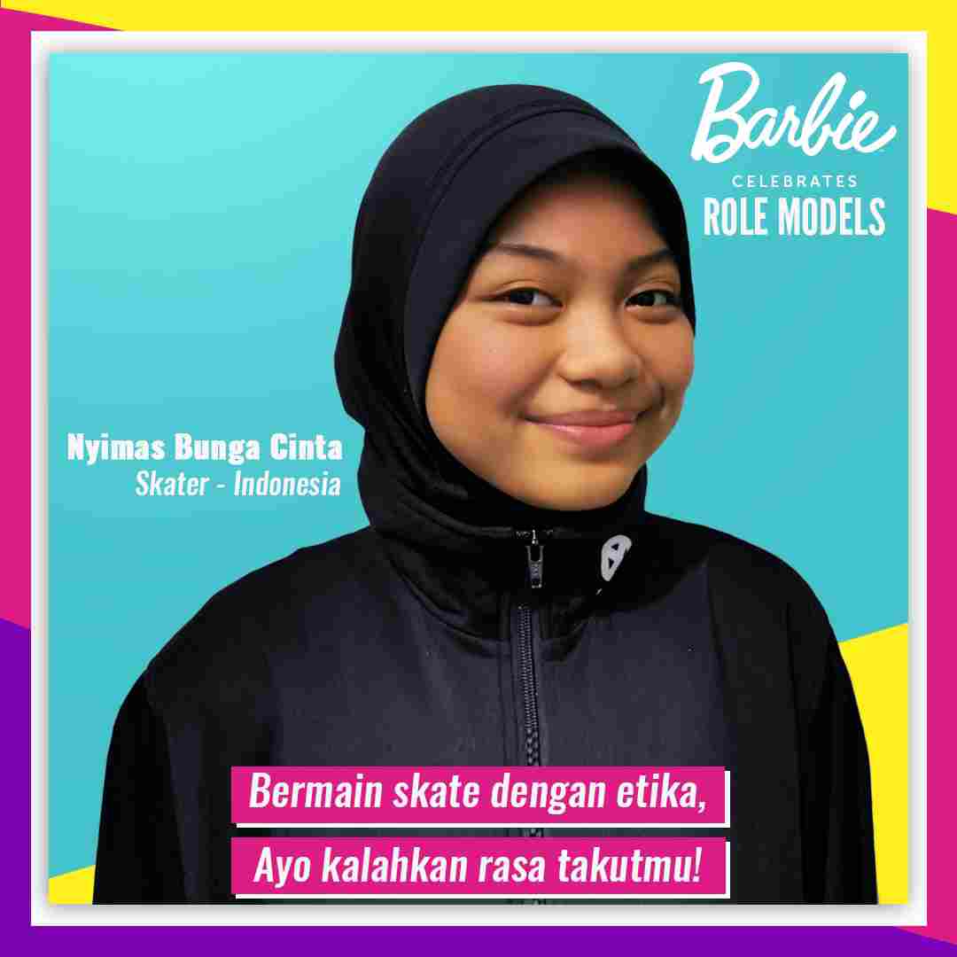 Di Indonesia, Barbie memberikan penghargaan kepada Nyimas Bunga Cinta, pemain skateboard Indonesia yang telah berkompetisi di Asian Games tahun 2018 dan menjadi peraih medali termuda di sepanjang sejarah Asian Games 2018 pada usia 12 tahun, dimana ia memenangkan medali perunggu. Nyimas juga telah memenangkan medali emas di Vans Park Series Regional Asia dan medali perak di SEA Games 2019. Prestasi yang telah diraih sejak usia sangat muda telah membuktikan bahwa Nyimas merupakan inspirasi bagi anak-anak perempuan yang bercita-cita menjadi atlet. Karena itu, Nyimas juga senantiasa berbagi pengalaman dan motivasi yang bertujuan untuk menginspirasi anak perempuan dan laki-laki dan untuk mempromosikan skateboard di Indonesia.
