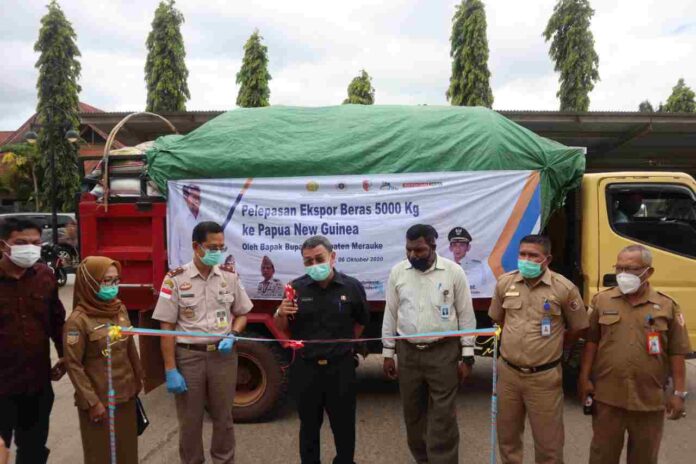 Beras merupakan komoditas unggulan yang melimpah dan tersebar di beberapa distrik Kabupaten Merauke. Karantina Pertanian Merauke melakukan pelepasan ekspor beras yang akan dikirim ke negara tetangga, Papua New Guinea, Selasa (06/10).