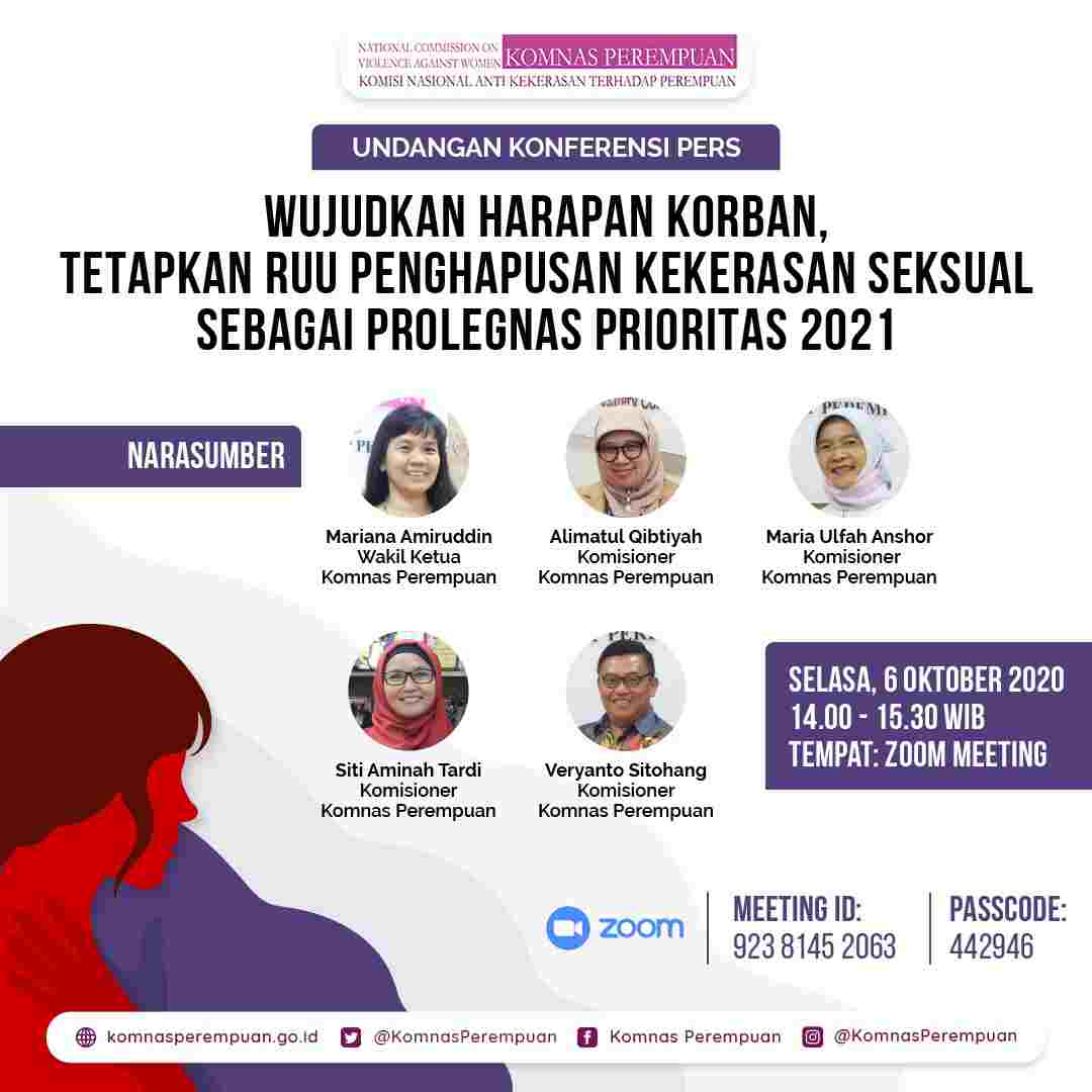 Komnas Perempuan bersama Jaringan Masyarakat Sipil telah mengusulkan Naskah Akademik (NA) dan RUU Penghapusan Kekerasan Seksual kepada sejumlah Anggota Legislatif untuk diusulkan kembali menjadi usul inisiatif DPR RI. Menjelang sidang paripurna DPR RI untuk menentukan prioritas Prolegnas 2021, Komnas Perempuan menyampaikan hal-hal sebagai berikut: