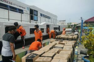 Polsek Kep Seribu Utara Lakukan Pengamanan Distribusi Paket Bansos di Pulau Kelapa