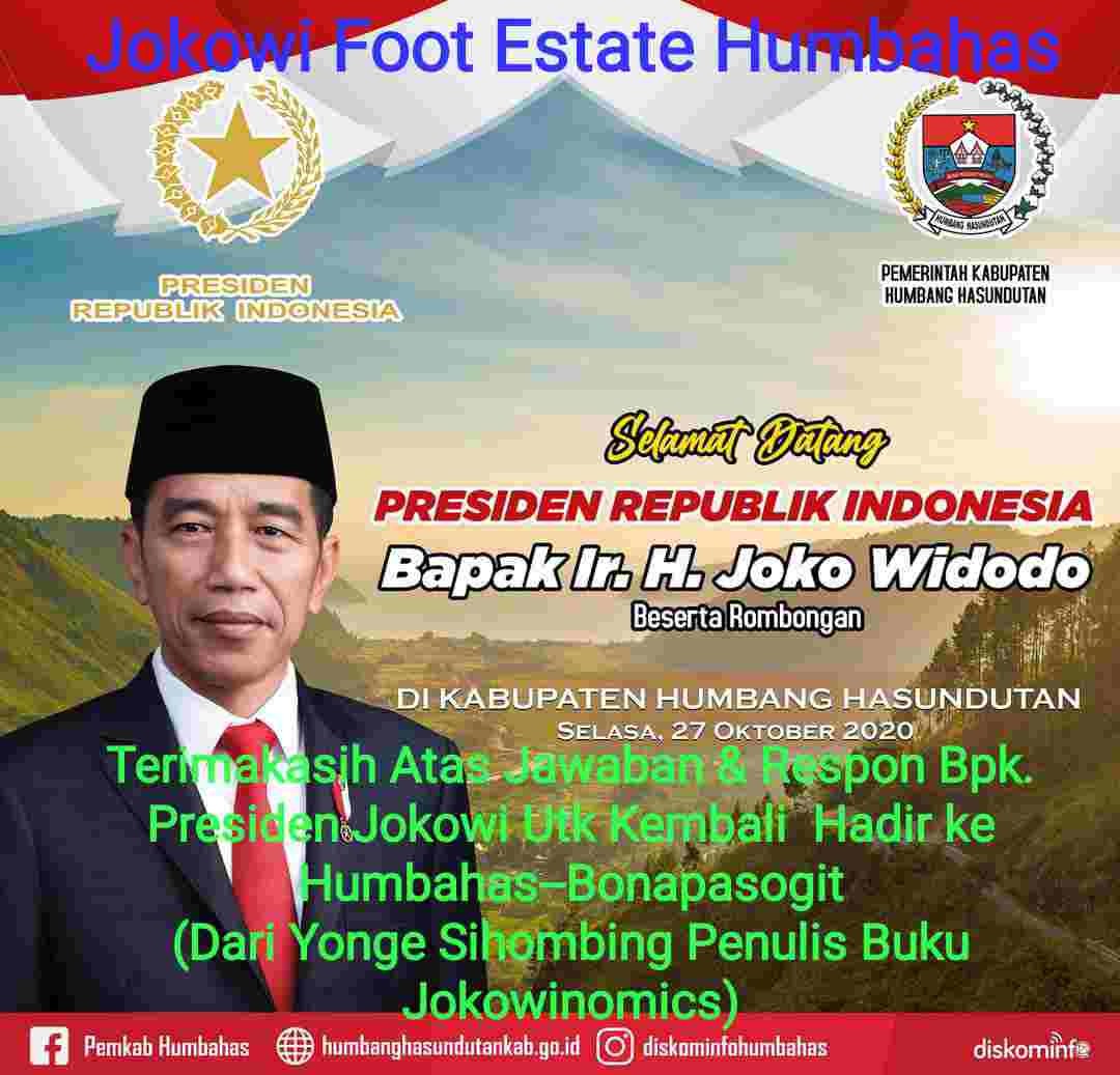 Komite Pengusul Nobel Ekonomi Untuk Jokowi (The Propose Commitee of Economy Nobel for Jokowi) mengapresiasi rencana kunjungan Presiden Joko Widodo ke Kab. Humbang Hasundutan, Provinsi Sumatera Utara, besok, Selasa, 27 Oktober 2020.
