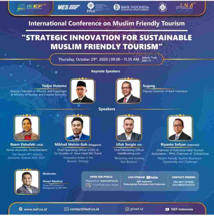 “Kita harapkan, melalui konferensi internasional ini, kita bisa mendapatkan banyak insight bisnis dan strategi terkait pengembangan usaha di bidang industri pariwisata halal di Indonesia. Selain itu, acara ini kita harapkan juga bisa memberi citra positif bagi Indonesia di mata turis Muslim internasional dan diharapkan nanti kunjungan wisatawan mancanegara juga perlahan akan semakin meningkat” Ujar Noveri menjelaskan.