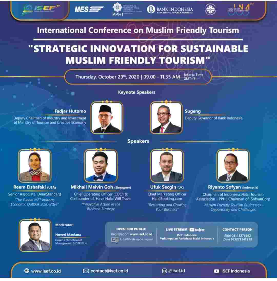 Konferensi Internasional Pariwisata Ramah Muslim ini juga didukung oleh Masyarakat Ekonomi Syariah (MES), Perhimpunan Hotel dan Restoran Indonesia (PHRI), dan juga didukung penuh oleh Bank Indonesia selaku tuan rumah pelaksana Indonesia Sharia Economic Festival (ISEF) 2020.