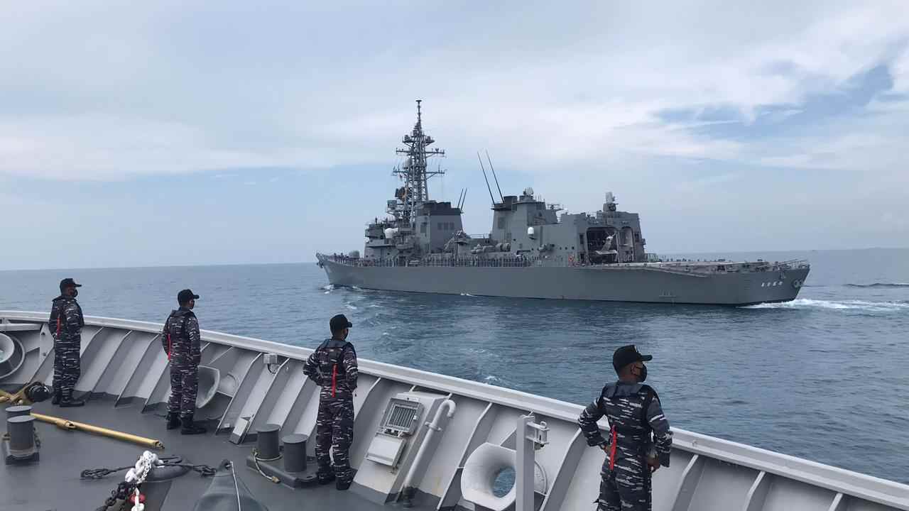 TNI AL kembali menggelar latihan bersama dengan Angkatan Laut Jepang/Japan Maritime Self-Defense Force (JMSDF) di perairan Teluk Jakarta, Selasa (13/4/2021/.