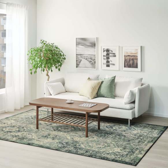 Saat mendekor ruang tamu, jangan lupakan bagian lantai. VONSBÄK, karpet dengan bulu tipis dan warna hijau oriental-vintage dari IKEA ini akan melengkapi lantai ruang tamu sekaligus memberikan nuansa Timur Tengah yang hangat. Polanya yang terlihat pudar dan usang, membuat karpet ini antik. Dari segi keawetan, warna karpet tidak akan mudah memudar karena terbuat dari bahan polypropylene.