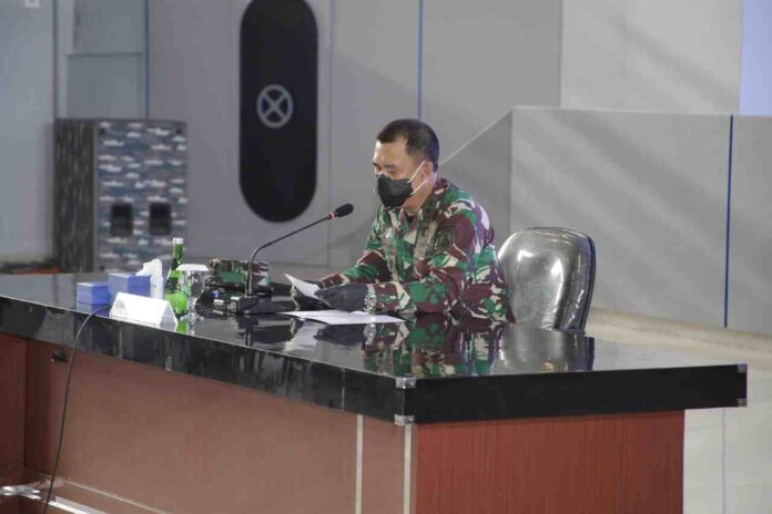 Panglima Komando Armada I Laksda TNI Abdul Rasyid K, S.E., M.M. menerima kunjungan Askomlek Kasal Laksda TNI I.N.G Sudihartawan S.Pi., M.M dalam rangka pembukaan Pelatihan Perwira Korps Elektronika KRI T.A. 2021 di Gedung O.B. Syaaf Mako Koarmada I, Jakarta Pusat. Senin (24/5/21).