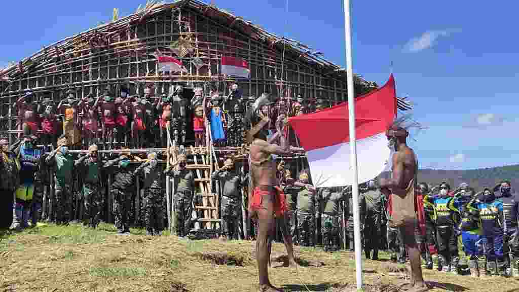 Setelah menerima bendera, tiga kepala suku tersebut langsung mengibarkan bendera melalui upacara yang dipimpin Pangdam dan diikuti oleh warga sekitar dan rombongan dari Kodam XVIII/Kasuari.