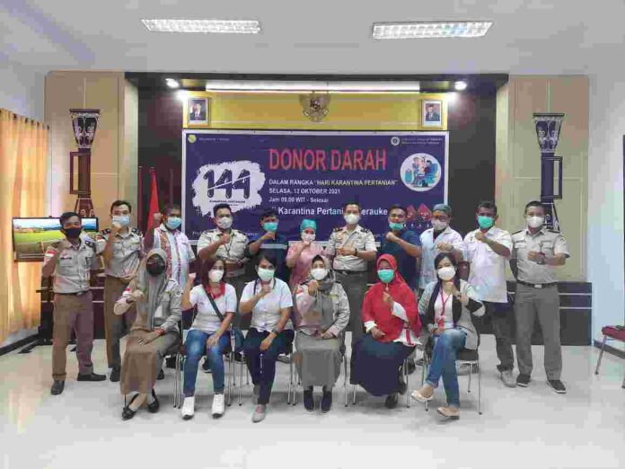 Badan Karantina Pertanian melalui Karantina Pertanian Merauke menggelar vaksinasi dan donor darah gratis di Kantor Induk Karantina pada Selasa (12/10).