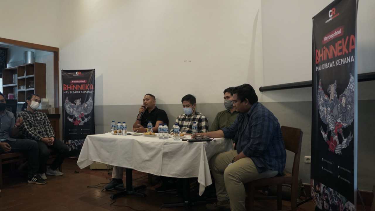 Komunitas milenial @CorongRembuk di Instagram, menggelar diskusi interaktif luring serta daring bertema “Bhinneka, Mau Dibawa Ke Mana?”, pada Rabu (2/2/2022) di Kedai Tjikini dengan narasumber Ridho Ary Azhari (ketua bidang Ristek DPP Gerakan Mahasiswa Nasional Indonesia-GMNI), Daud A. Gerung (ketua bidang Polkumham PB Pergerakan Mahasiswa Islam Indonesia-PMII), dan Ilham Fadli (ketua bidang Pembangunan Demokrasi dan Pemerintahan PB Himpunan Mahasiswa Islam-HMI).