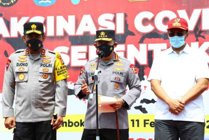 Kapolri Jenderal Listyo Sigit Prabowo hari ini meninjau langsung pelaksanaan akselerasi vaksinasi di RS Mandalika, Pujut, Lombok Tengah, Nusa Tenggara Barat (NTB). Dalam kesempatan ini Sigit meminta Forkopimda NTB bekerja keras mengendalikan laju COVID-19 terkait adanya sejumlah event internasional.