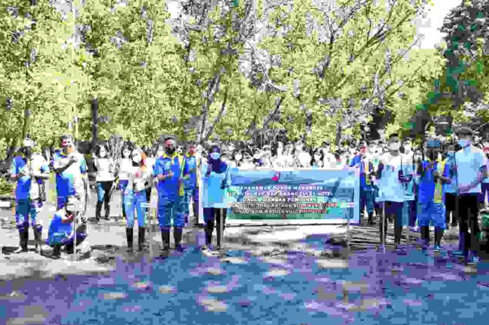Lanud Sam Ratulangi menggelar penanaman pohon Mangrove di sepanjang Pantai Rap-rap Grand Luley Hotel, Manado, Sabtu (12/3/2022). Komandan Lanud Sam Ratulangi Marsma TNI Mohamad Satriyo Utomo, S.H., memimpin langsung penanaman ini.