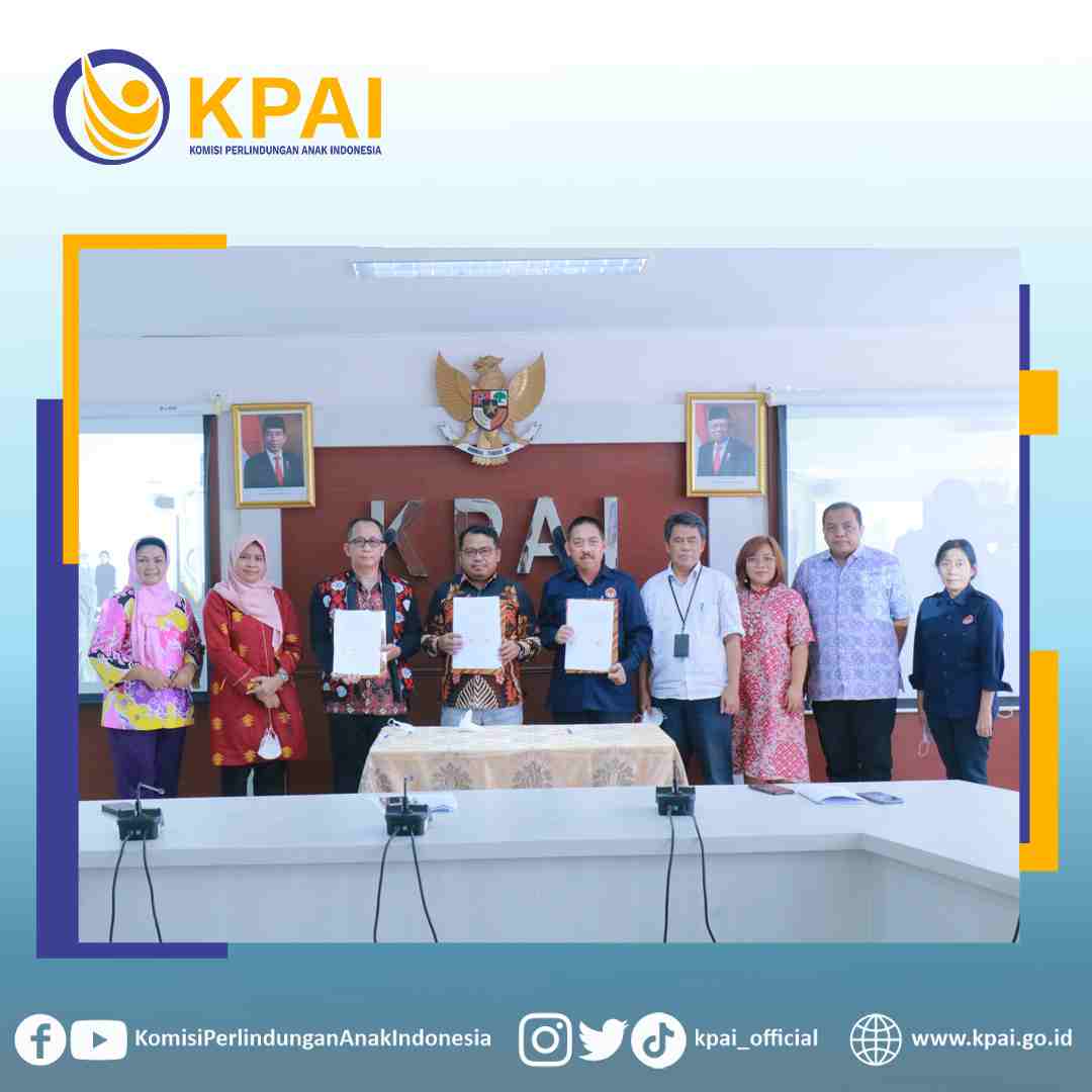 Kementerian Pemberdayaan Perempuan dan Perlindungan Anak (KemenPPPA) melakukan penandatanganan Perjanjian Kerja Sama (PKS) dengan Komisi Perlindungan Anak Indonesia (KPAI) dan Lembaga Perlindungan Saksi dan Korban (LPSK) tentang Pemenuhan Hak Restitusi Anak Korban Tindak Pidana di Ruang Rapat Kantor KPAI, Jakarta (27/4/2022).
