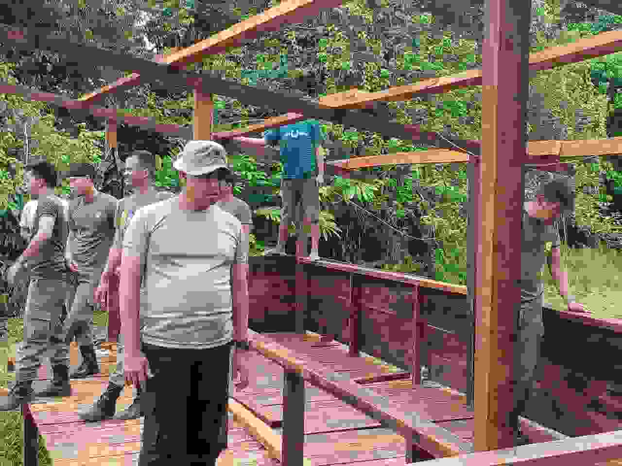 Beberapa Personel Satgas Binmas yang dipimpin Iptu Joni Linggi dan 4 Personel , dan Personel Tim Satgas Binmas Wilayah Yahukimo, Ipda dr Muhammad Pino Hakim dan 3 Personel, Personel Satgas Preventif AKP Arbi Guna Bimantra, S.I.K,. dan 15 Personel Satgas Preventif Ops Damai Cartenz-2022, 3 anggota Personel Satgas Humas, langsung bersama-sama masyarakat bergotong royong membangun kandang ternak babi kampung Moruku jalan poros Logpon km 09 kompleks persawahan.