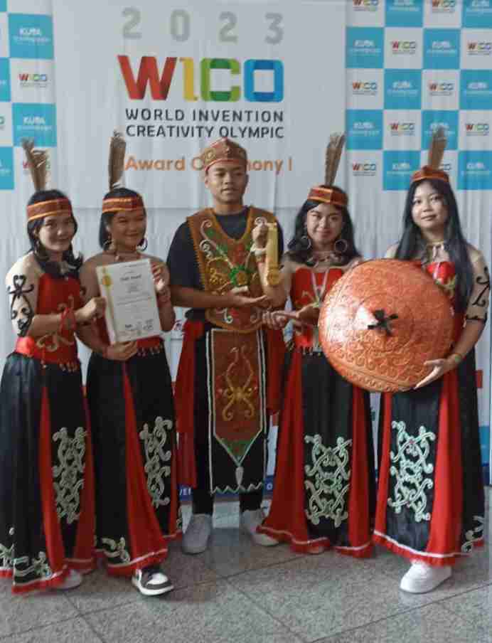 Medali Emas kejuaraan bergengsi “World Invention Creativity Olympic (WICO) di Seoul Korea Selatan 27-29 Juli 2023. Setelah mereka mengangkat sebuah tema Sapuyung Dare, topi ritual Dayak dari hidup sampai mati.